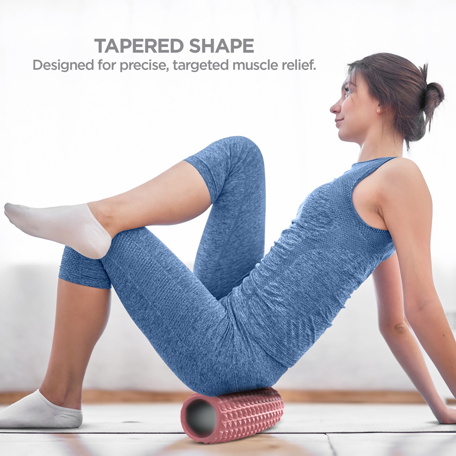 Tapered foam roller has a contoured shape. Mid-part is slightly taller tapering on both ends to help you relax and alleviate painful sore large muscles. Ideally used for pre-work out warm up, it is also used for post exercise recovery.